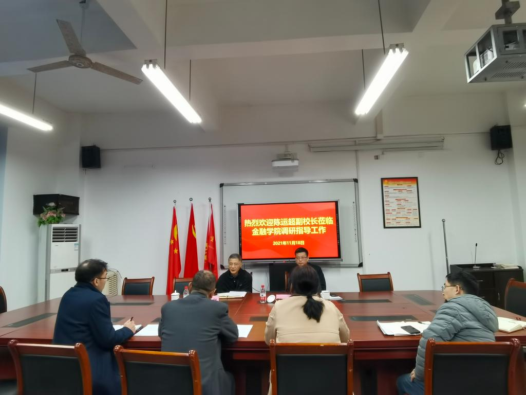 11月18日下午,副校长陈运超到金融学院调研指导招生就业工作。金融学院党委书记、副院长王建明,党委副书记、院长王兰,党委副书记、纪委书记余新,党委委员、副院长庞楷、王韧,党委委员、专职组织员赵甫刚以及毕业班辅导员参加了会议。会议由王建明主持。
