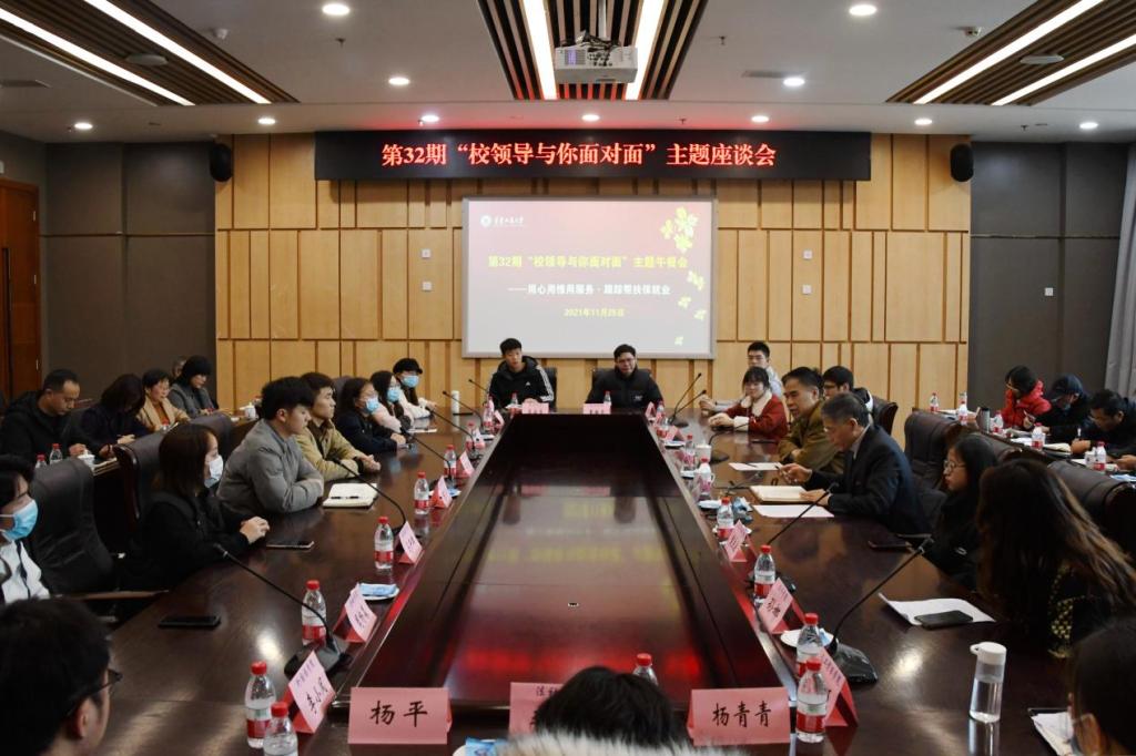 陈运超对毕业生代表提出的问题和建议一一作了回应。他谈到,习近平总书记在庆祝中国共产党成立100周年大会上讲到“未来属于青年,希望寄予青年”。青年大学生就业是学校重点开展的工作,学校有关部门和学院要充分认识到毕业生就业帮扶工作的重大意义。要充分利用社会资源,多方寻找就业单位,通过组织专场招聘、优先推荐、个别推荐等措施,积极为毕业生提供就业机会,同时加强对学生的就业技能培训和面试指导。陈运超对同学们提出四点建议:一是将国家和学校给予的帮扶内化为自身的行为。二是抓住学校提供的就业机会,积极作为,在参加考研和公务员考试的同时,抓住时机,不放弃学校提供的各类就业机会。三是对于参加应聘的同学,要正确看待企业需求,完善个人简历,做到合理预期,准确定位。四是抓住实习黄金期,积累足够的实习经验,做好进入社会就业的准备。