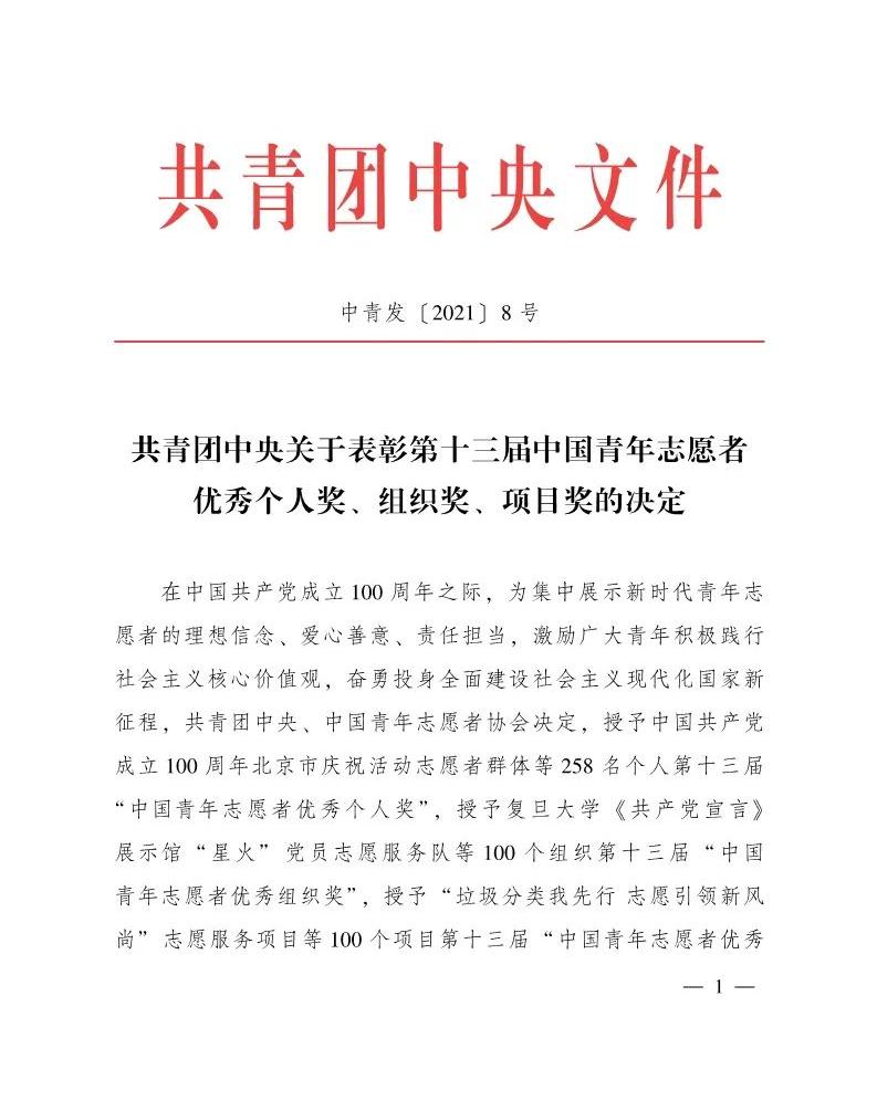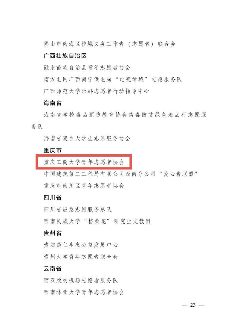 11月30日,共青团中央发布《关于第十三届中国青年志愿者优秀个人奖、组织奖、项目奖的决定》,万象城娱乐awc线路青年志愿者协会获评第十三届“中国青年志愿者优秀组织奖”。该奖项是全国志愿服务类评选的最高荣誉,2021年全国共评选优秀组织奖100个,其中重庆市获奖3个,万象城官网是唯一一个获奖高校。