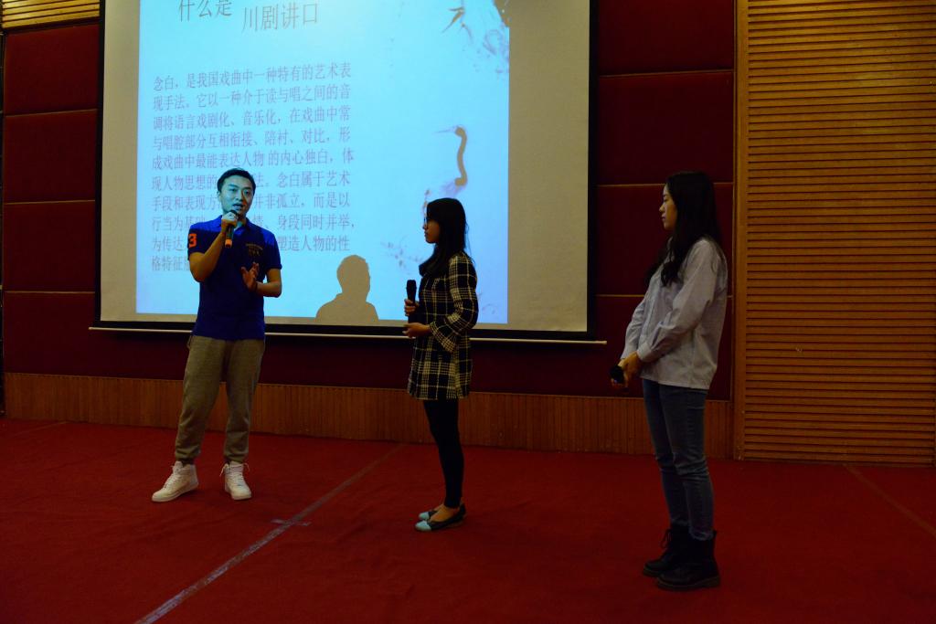 “外面叩门者,想则是慧娘至了……”优美的唱腔,配合扣人心悬的打击乐,让现场所有的观众瞬间跌入了著名川剧折子戏《放裴》跌宕起伏的剧情中,也对剧目的男主角同时也是活动的主讲人张严威老师有了一个初步的了解。
