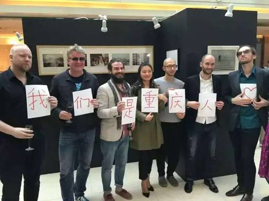 雷内经常用相机记录在重庆看到的具有特色的建筑和传统技艺等。他此次展出的摄影作品有重庆十八梯、磁器口、老城门等标志性建筑,以及一些重庆传统文化有代表性的手艺人。他和其他几位一起参加此次摄影展的外国人一起,分别手拿用中文写的大字“我”“们”“是”“重”“庆”“人”和一个爱心,并在一起合影。