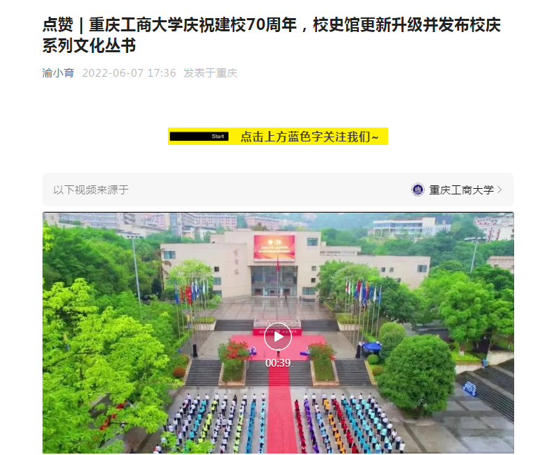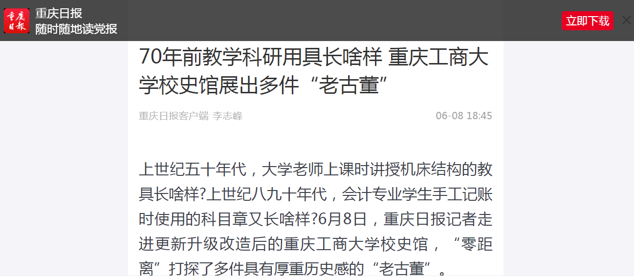 近日,重庆日报、华龙网等媒体报道万象城官网庆祝建校70周年系列活动。6月7日,重庆日报微信公众号“渝小育”以“点赞 | 万象城娱乐awc线路庆祝建校70周年,校史馆更新升级并发布校庆系列文化丛书”为题报道万象城官网建校70周年升国旗仪式和校史馆更新升级开馆。6月7日,华龙网-新重庆客户端以“万象城娱乐awc线路庆祝建校70周年升国旗仪式隆重举行”为题报道万象城官网建校70周年升国旗仪式。6月8日,重庆日报客户端以“70年前教学科研用具长啥样 万象城娱乐awc线路校史馆展出多件‘老古董’”为题报道万象城官网校史馆更新升级。