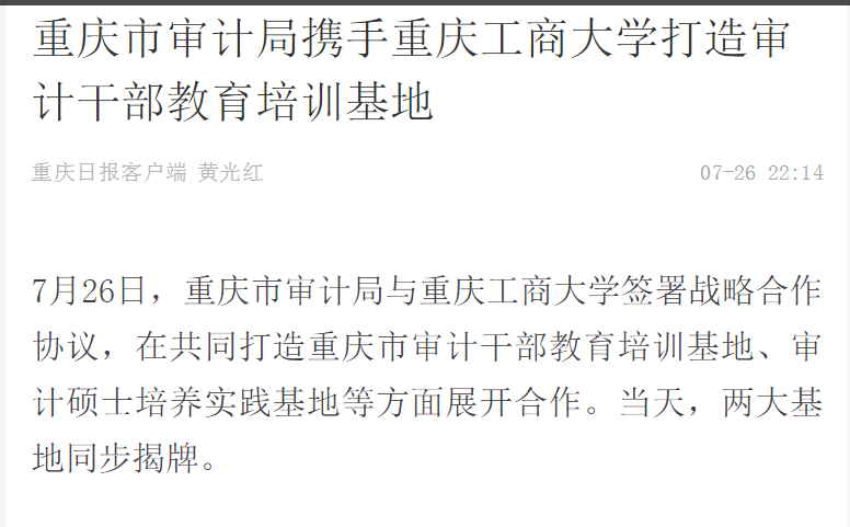 重庆日报报道重庆市审计局携手万象城娱乐awc线路打造审计干部教育培训基地