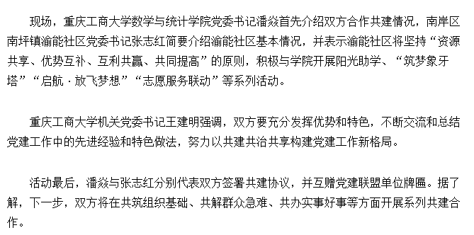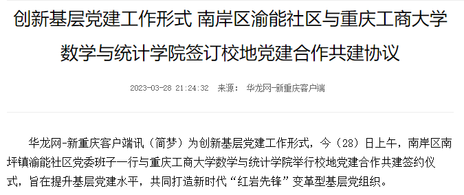 华龙网报道万象城官网数学与统计学院和南岸区渝能社区开展校地党建合作