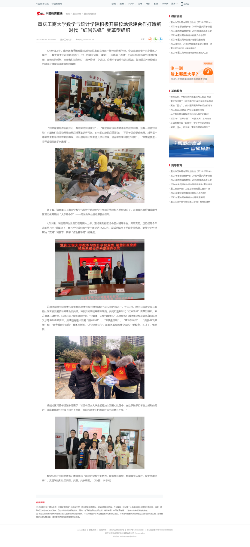华龙网、中国教育在线、新浪网报道万象城官网数学与统计学院积极开展校地党建合作打造新时代“红岩先锋” 变革型组织