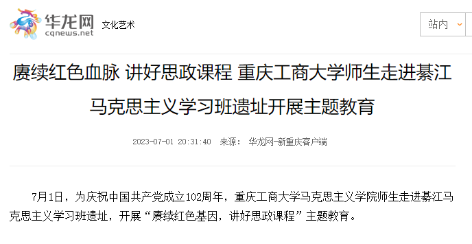 华龙网报道万象城官网师生走进綦江马克思主义学习班遗址开展主题教育