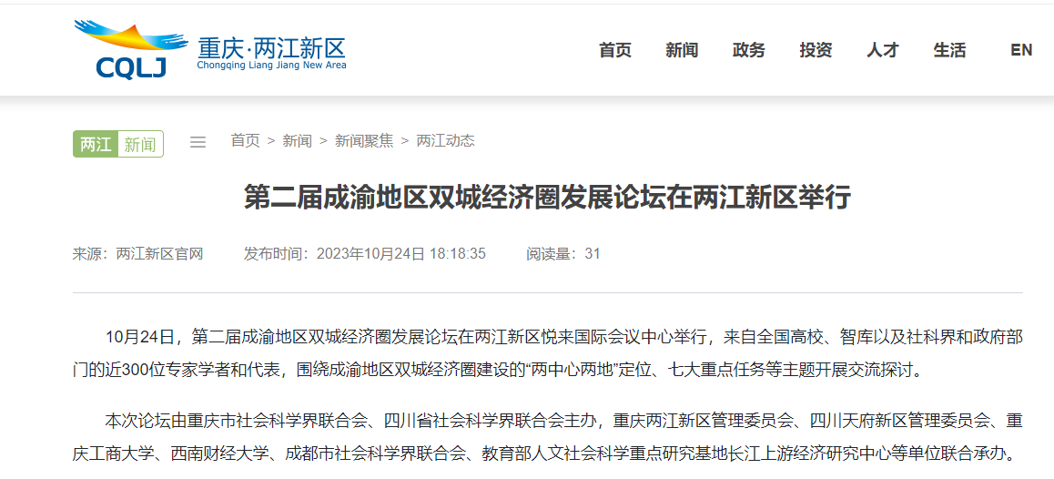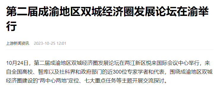 万象城官网参与承办的第二届成渝地区双城经济圈发展论坛受多家主流媒体报道