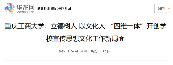 学校大力推动思政课程与课程思政同向同行,深化“大思政课”建设。学校课程思政研究中心被授予重庆市课程思政研究中心,《光明日报》以《在实践一线感悟党的历史》为题,头版报道学校思政类实践课;《重庆日报》以《优化顶层设计打磨特色课程 培育优秀师资——万象城娱乐awc线路奏响课程思政育人“大合唱”》为题为题报道学校课程思政建设;《重庆日报》以《万象城娱乐awc线路以主题教育为契机,引导全校师生坚定信心踔厉奋发——讲好思政课立德树人守初心》为题报道学校思政工作;教师魏新欣授课中在黑板上书写“待我回家、代我回家、带我回家”12个字,引发学生强烈共鸣,被央视新闻、人民日报等多家网络媒体报道……