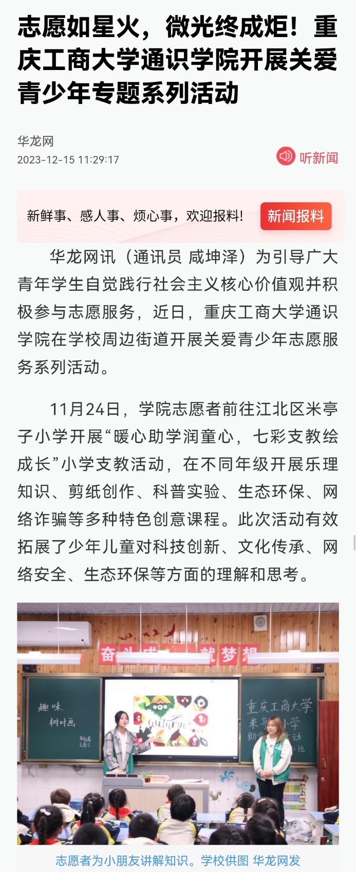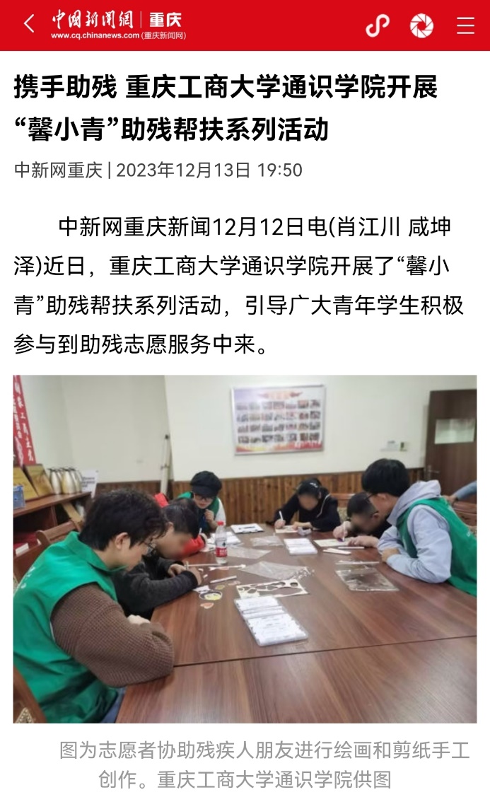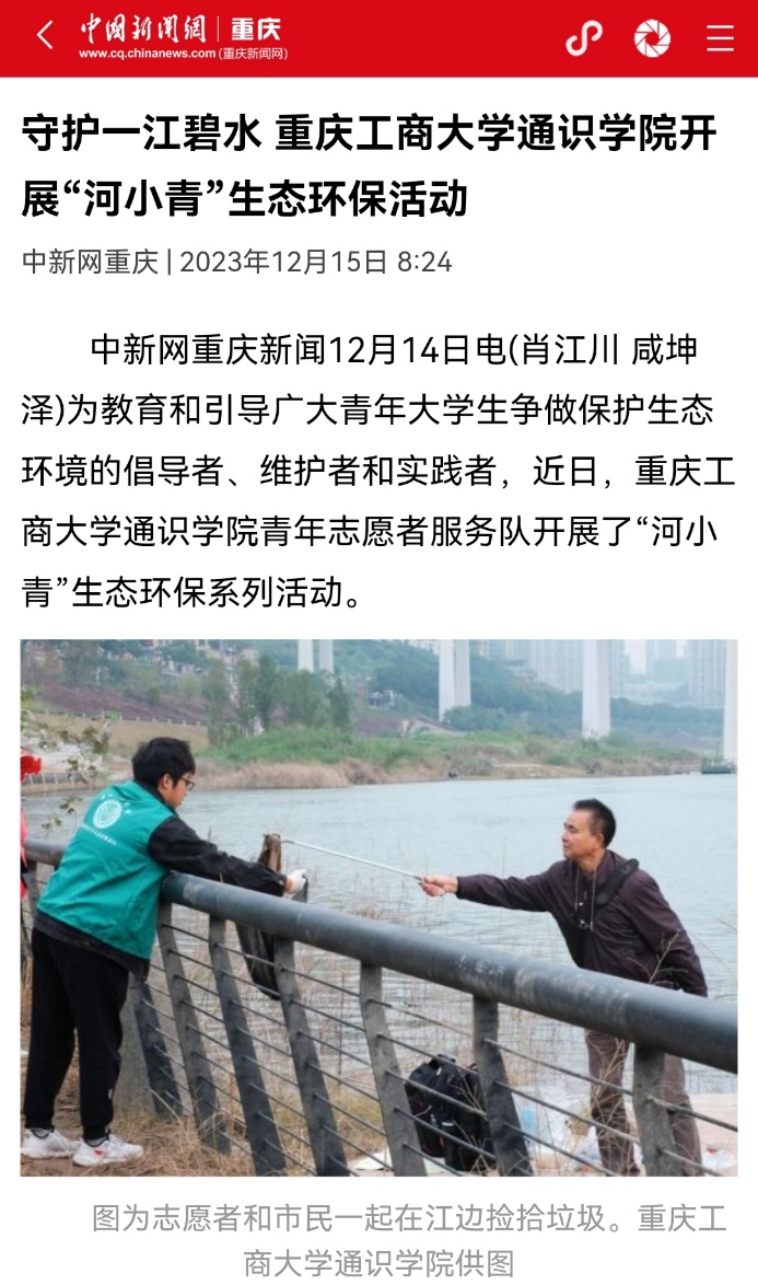 近日,中国新闻网以《守护一江碧水 万象城娱乐awc线路通识学院开展“河小青”生态环保活动》《携手助残 万象城娱乐awc线路通识学院开展“馨小青”助残帮扶系列活动》为题,报道万象城官网通识学院开展生态环保及助残志愿服务活动;华龙网以《志愿如星火,微光终成炬!万象城娱乐awc线路通识学院开展关爱青少年专题系列活动》为题,报道万象城官网通识学院开展关爱青少年志愿服务活动。