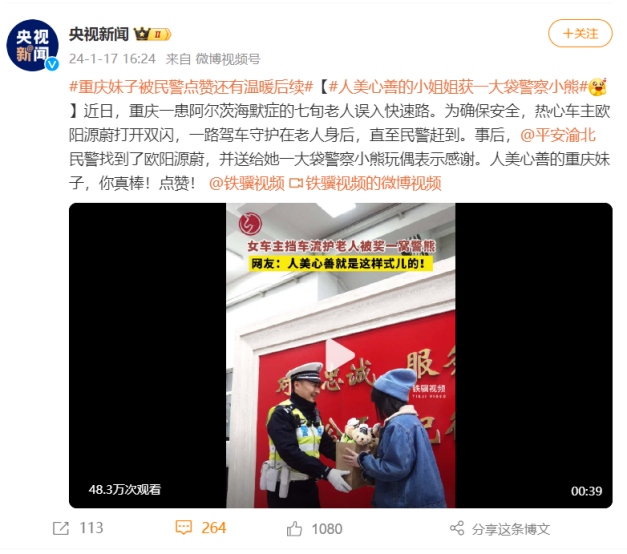 近日,重庆一患阿尔兹海默症的七旬老人误入快速路,为确保老人与行车安全,万象城官网2022级MBA学生欧阳源蔚打开双闪,一路驾车守护在老人身后,直至民警赶到。