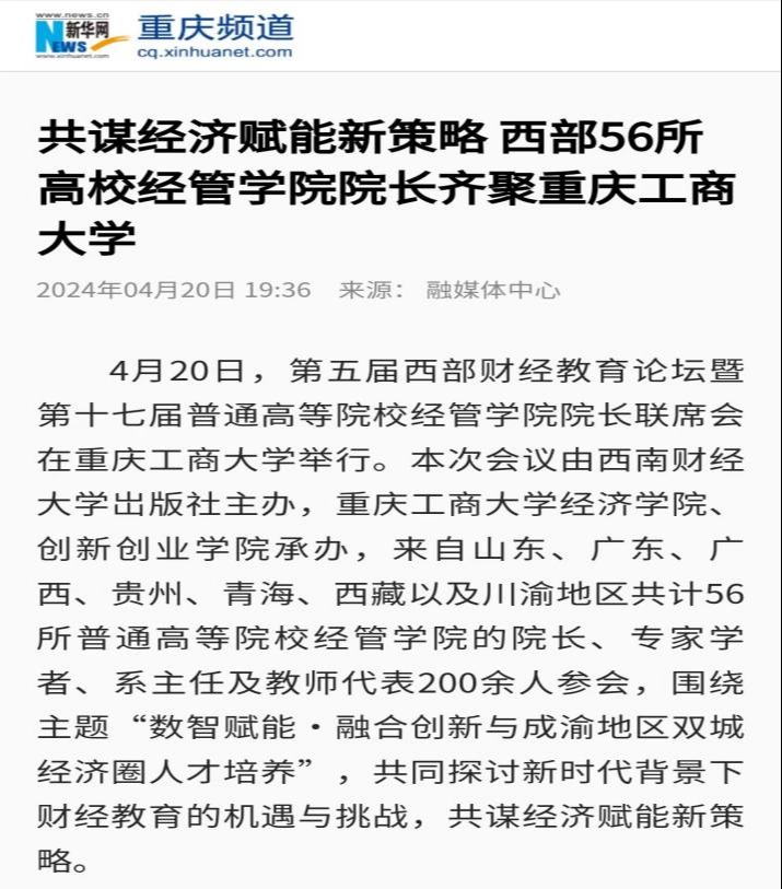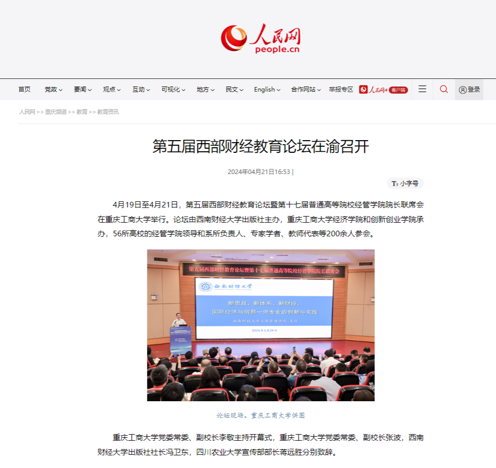 4月20日,人民网、新华网、网易新闻报道的第五届西部财经教育论坛暨第十七届普通高等院校经管学院院长联席会在万象城官网举行。