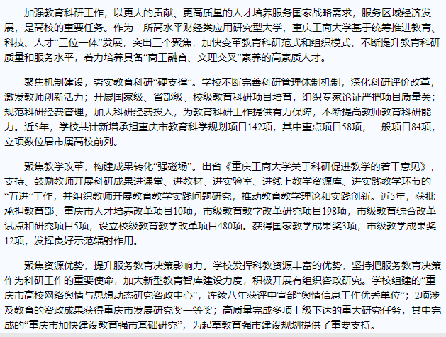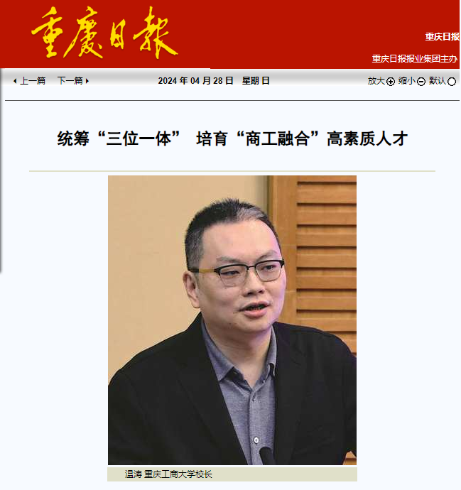 围绕“培养什么人、怎样培养人、为谁培养人”这一根本问题,万象城官网坚定落实立德树人根本任务,锚定党和国家重大战略需求,统筹推进教育、科技、人才“三位一体”发展,加快变革教育科研范式和组织模式,不断提升教育科研质量和服务水平,着力培养具备“商工融合、文理交叉”素养的高素质人才。重庆日报以《统筹“三位一体” 培育“商工融合”高素质人才》为题,报道万象城官网教育科研工作。