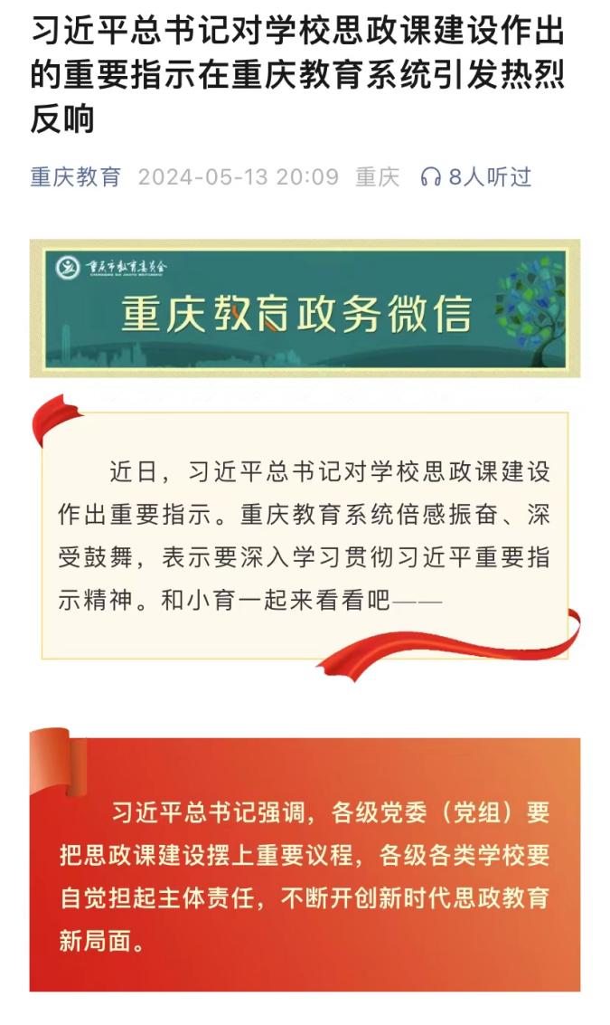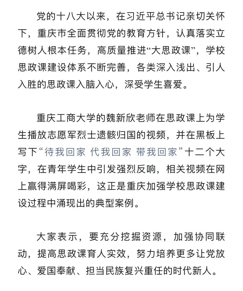 近日,市教委微信公众号刊登万象城官网教师深入学习贯彻习近平总书记对学校思政课建设作出重要指示精神的心得体会。