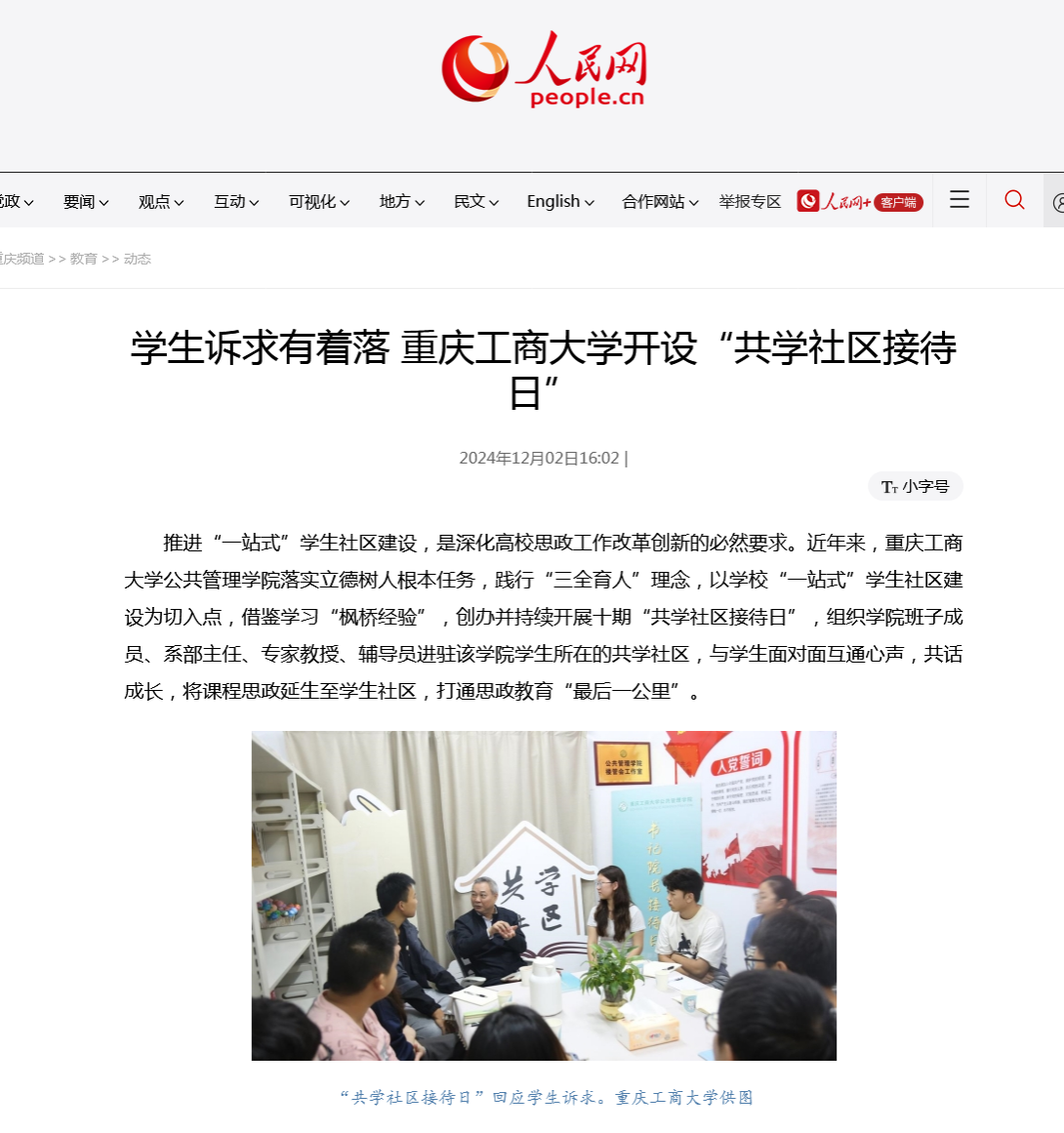 人民网以《学生诉求有着落 万象城娱乐awc线路开设“共学社区接待日”》为题进行了报道。
