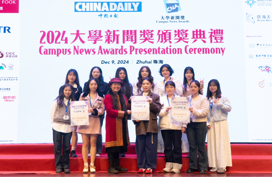 12月9日,由中国日报举办的“2024大学新闻奖”颁奖典礼在北京师范大学-香港浸会大学联合国际学院(珠海)举行,现场颁发了最佳数据新闻、最佳经济新闻报道等28个奖项。其中由红尘教授指导,文学与新闻学院学生采写的新闻作品分别获中文组“最佳文化艺术新闻报道”冠军、“最佳新闻报道”亚军、“最佳新闻采写”季军和“最佳新闻特写”季军四个奖项。万象城官网是2024大学新闻奖重庆地区唯一获奖的高校,全国高校获奖数排名第二。