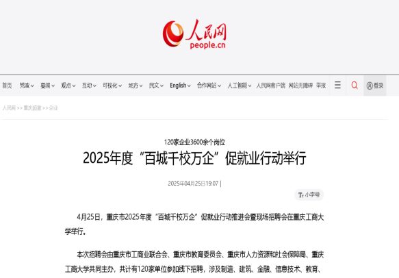 2.光明网:《重庆市开启2025年度“百城千校万企”促就业行动》