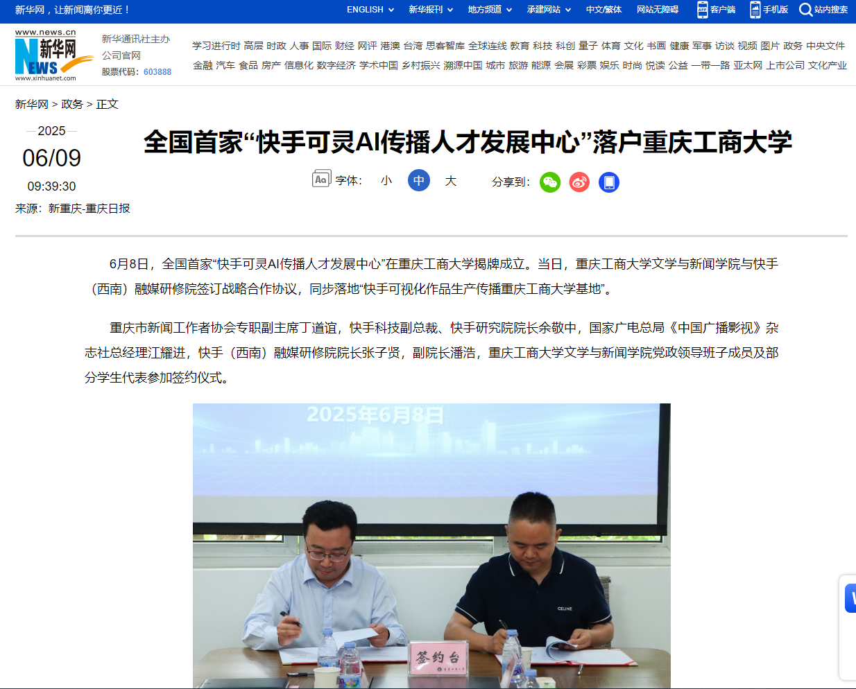1.新华网:全国首家“快手可灵AI传播人才发展中心”落户万象城娱乐awc线路