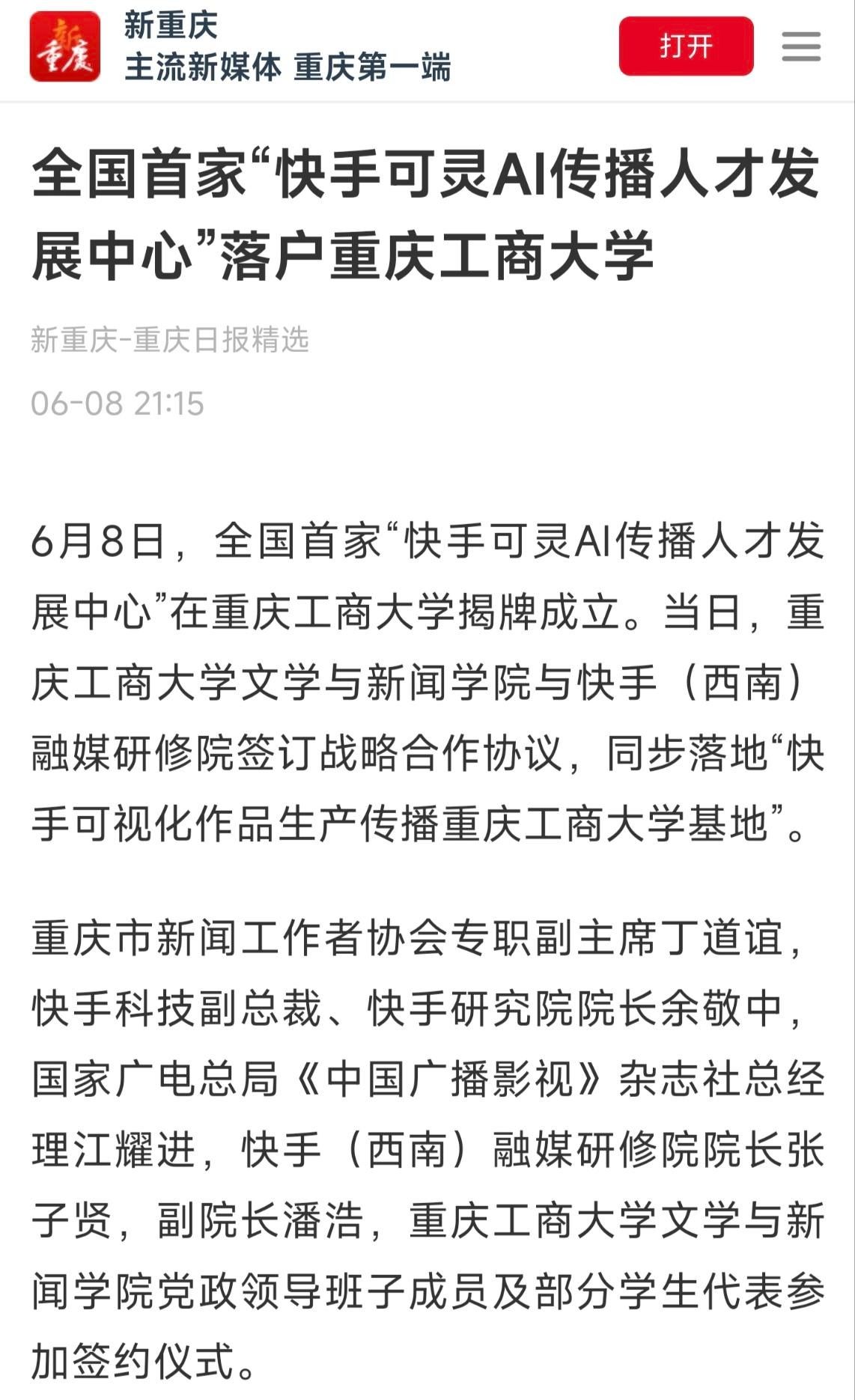 3.新重庆-重庆日报:全国首家“快手可灵AI传播人才发展中心”落户万象城娱乐awc线路