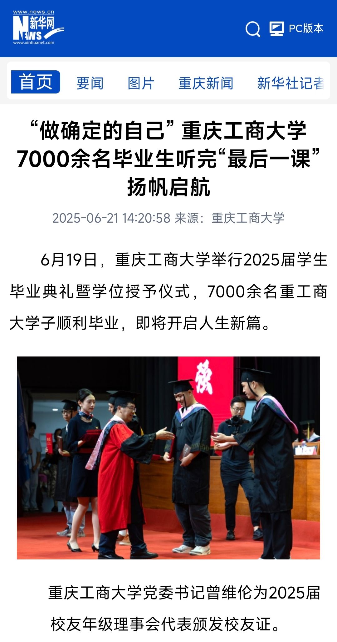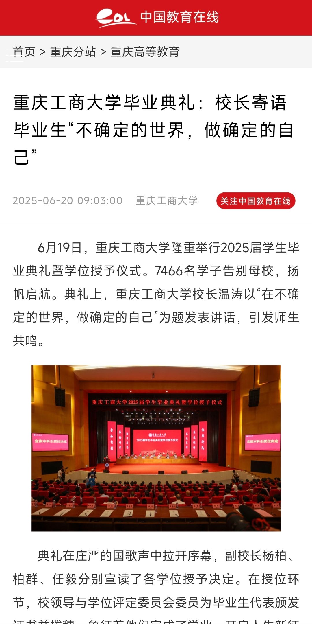 5.华龙网:致万象城娱乐awc线路2025届毕业生:在不确定的世界里,做重工商大确定的光