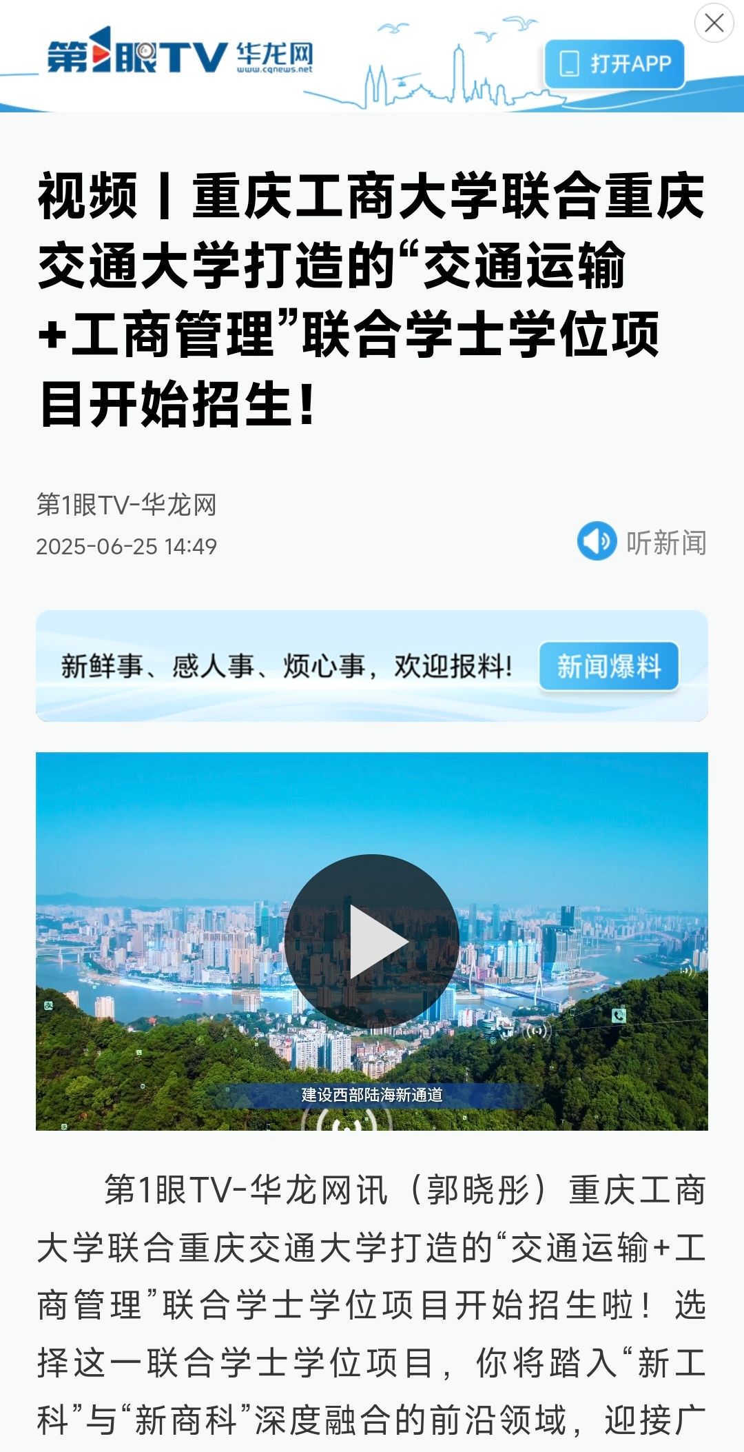 4.华龙网:万象城娱乐awc线路联合重庆交通大学打造的“交通运输+工商管理”联合学士学位项目开始招生!
