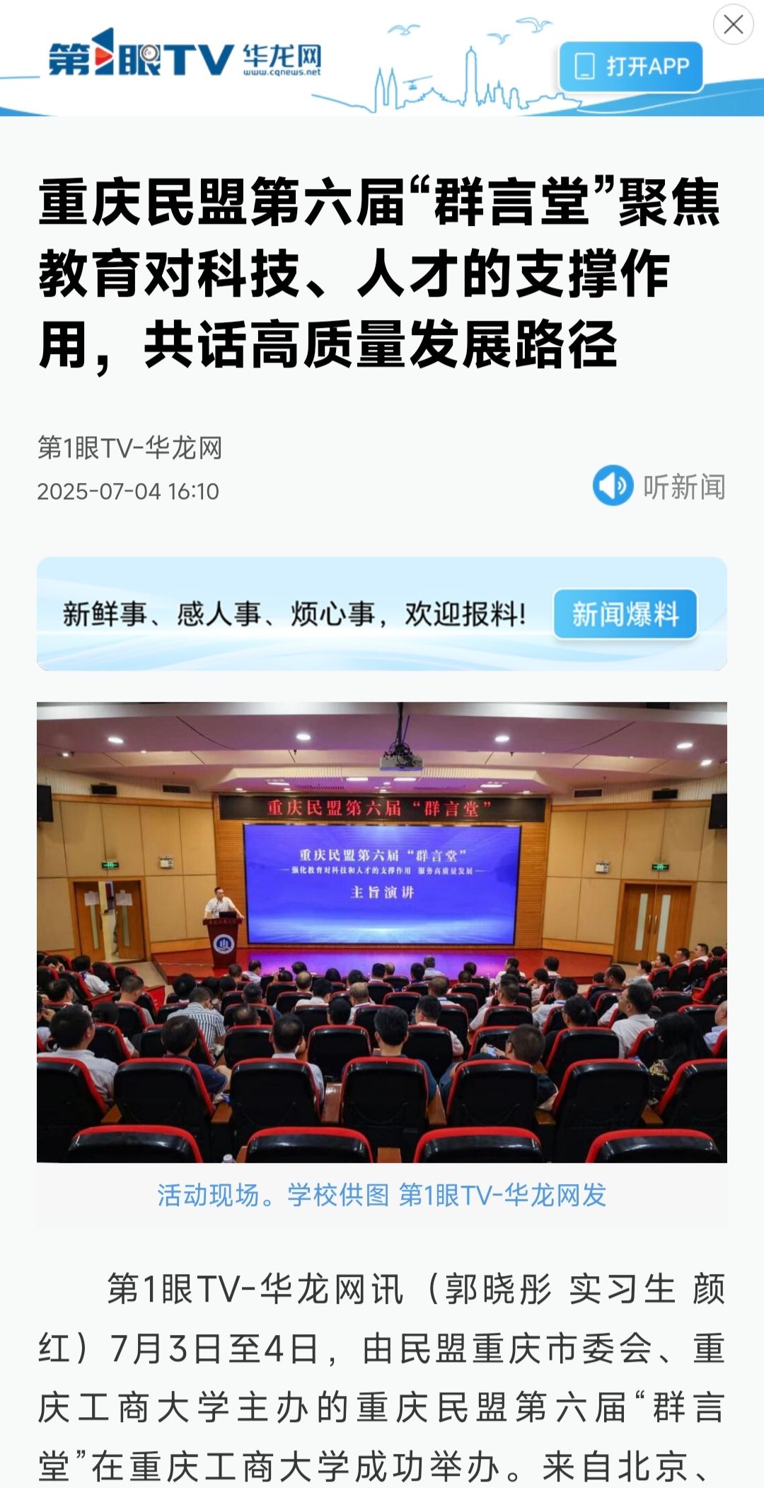 1.新重庆-重庆日报:聚焦教育对科技、人才的支撑作用 重庆民盟第六届“群言堂”共话高质量发展路径