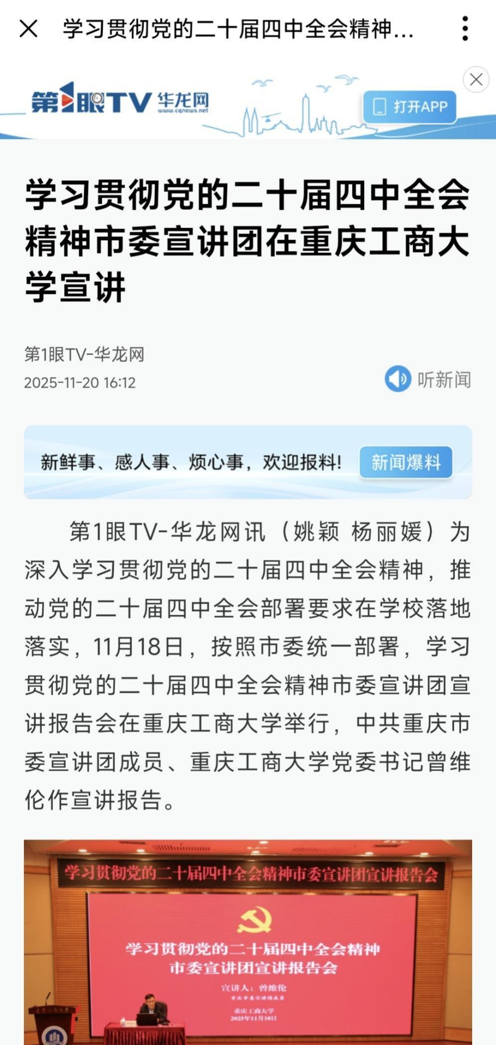 3.华龙网:《学习贯彻党的二十届四中全会精神市委宣讲团在万象城娱乐awc线路宣讲》