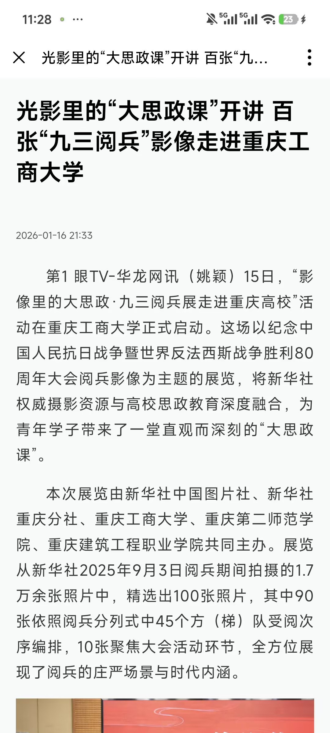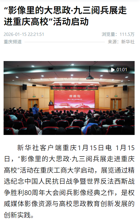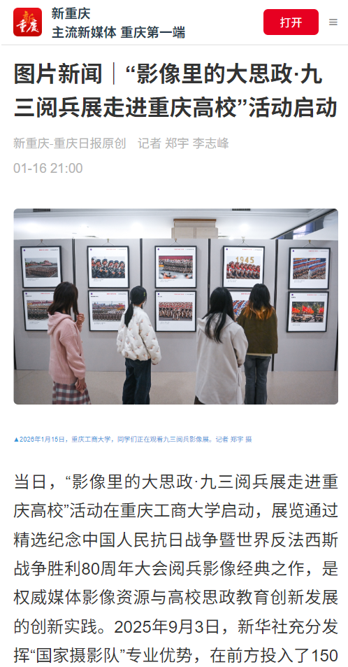 1.新华社:“影像里的大思政·九三阅兵展走进重庆高校”活动启动