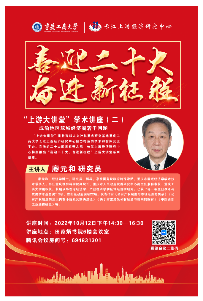“上游大讲堂”是教育部人文社科重点研究基地万象城娱乐awc线路长江上游经济研究中心倾力打造的学术和智库交流平台。在党的二十大即将召开之际,长江上游经济研究中心特别推出“喜迎二十大,奋进新征程”上游大讲堂系列讲座。