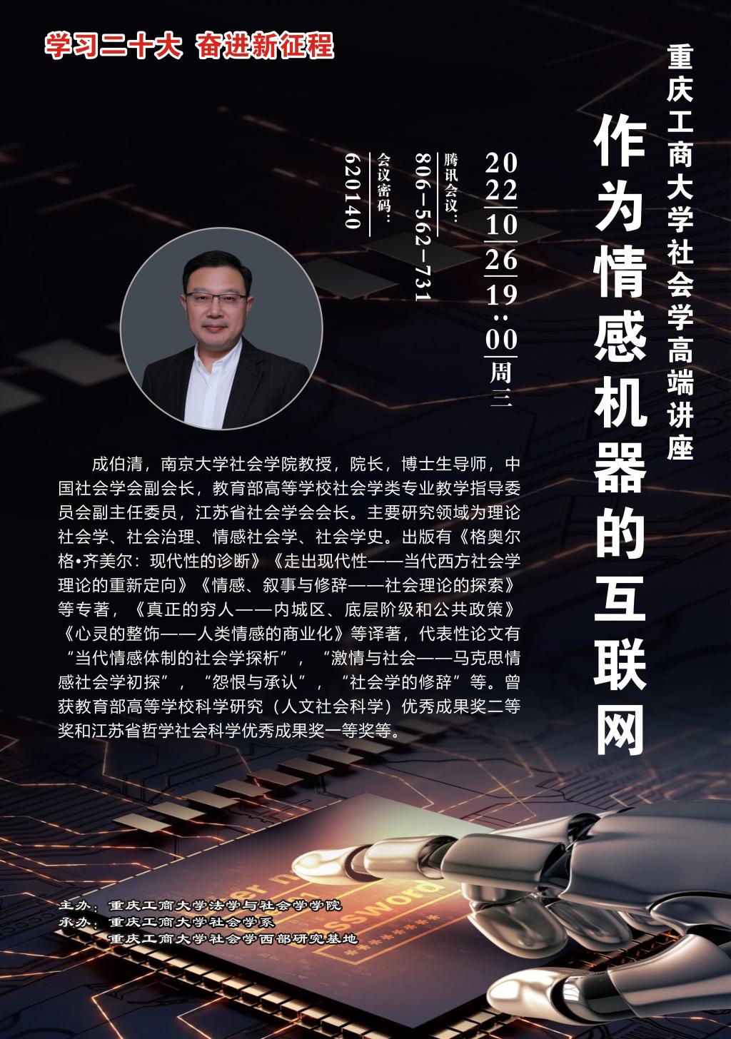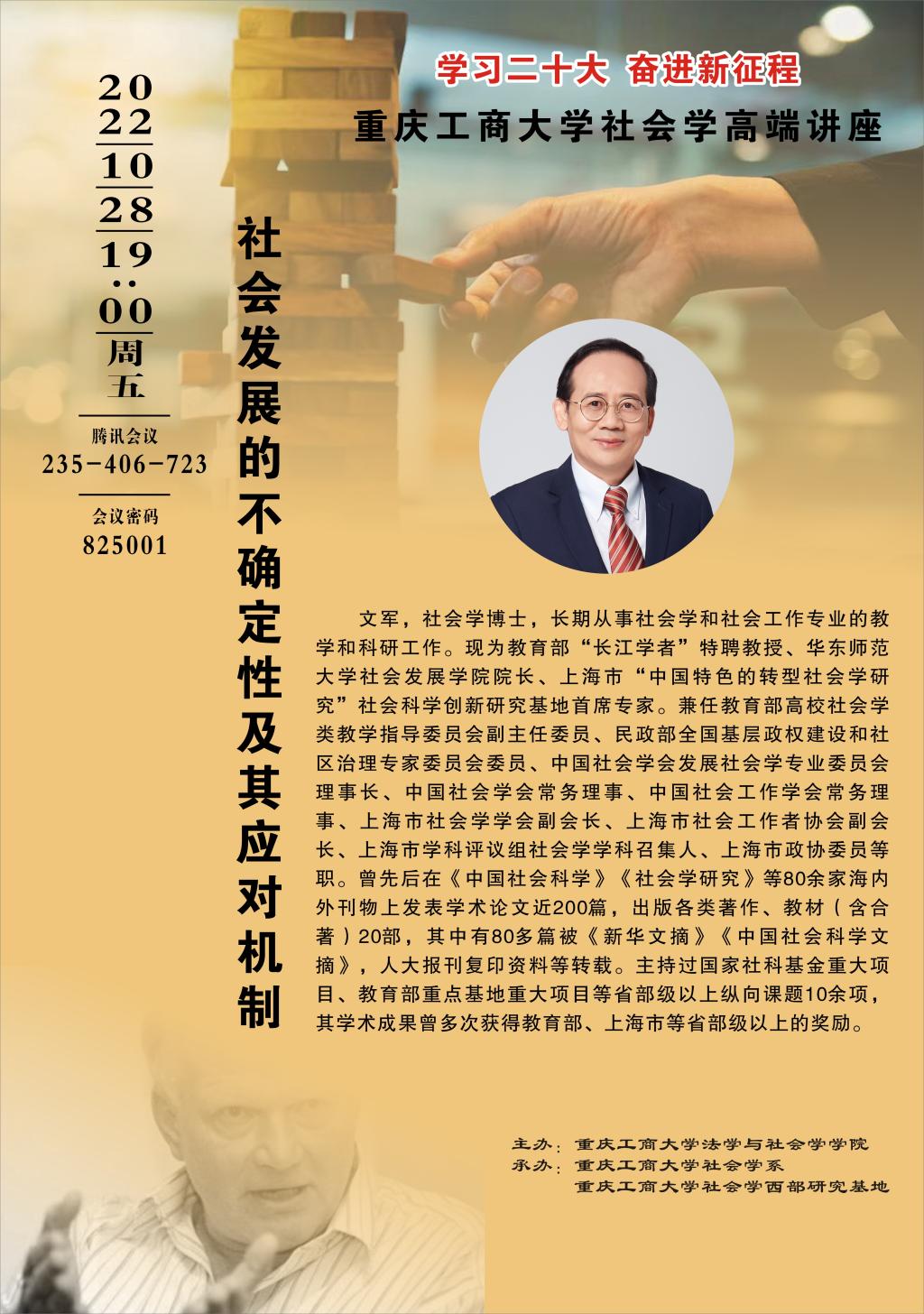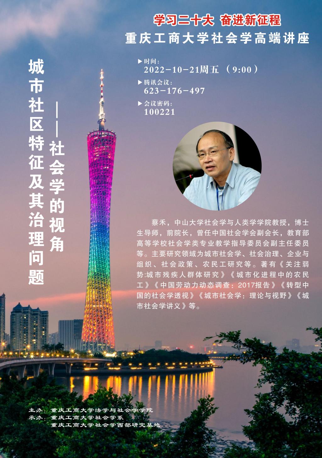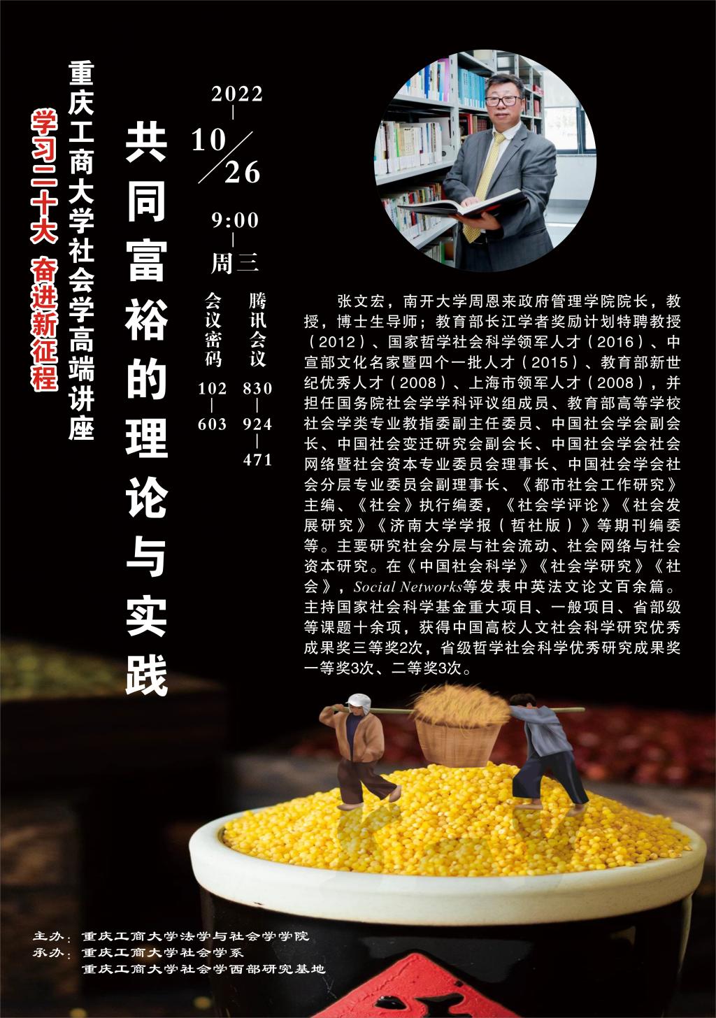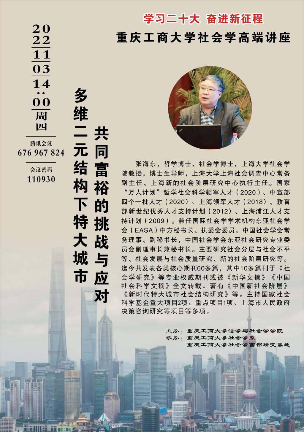 学习二十大,奋进新征程。 为推动万象城娱乐awc线路社会学重庆市“十四五”重点学科及一流专业建设,万象城娱乐awc线路社会学系、万象城娱乐awc线路社会学西部研究基地特举办社会学系列论坛。论坛为期一个月(2022.10.20-11.20),共计10场。论坛负责人:罗兆均(邮箱:545319529@qq.com)。具体安排如下: