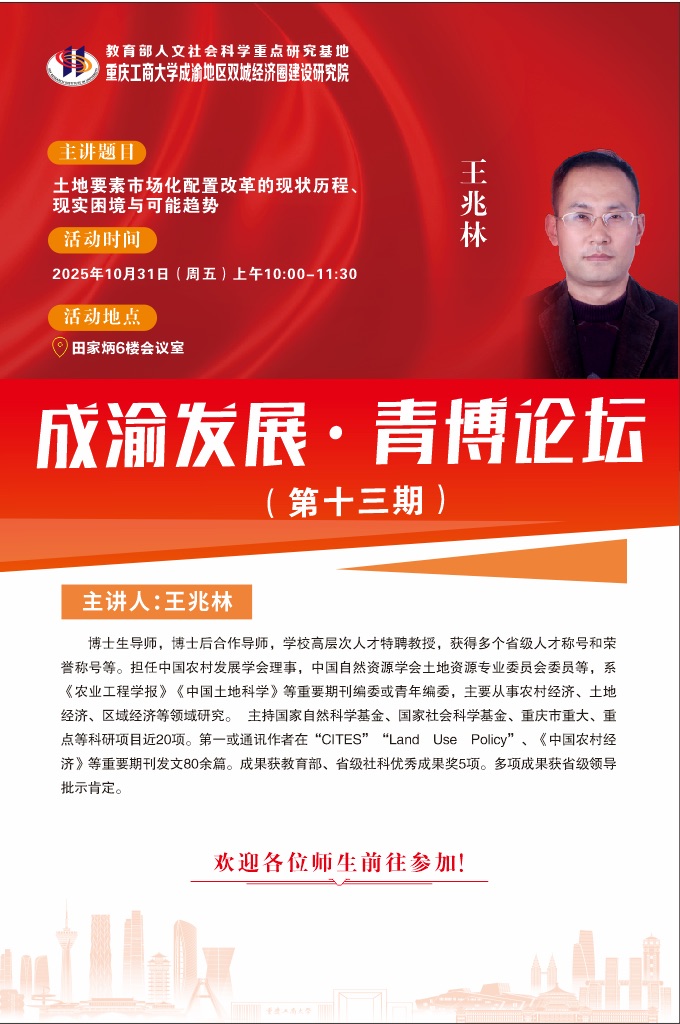 主讲题目:土地要素市场化配置改革的现状历程、现实困境与可能趋势