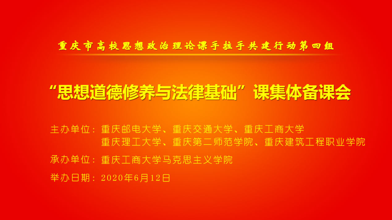 为贯彻落实习近平总书记在学校思想政治理论课教师座谈会上的重要讲话精神,根据中共重庆市委教育工作委员会办公室、重庆市教育委员会办公室《关于开展高校思想政治理论课手拉手共建行动的通知》要求,6月12日下午,重庆市高校思想政治理论课手拉手共建行动第四组在腾讯会议平台召开“思想道德修养与法律基础”课集体备课会。会议由万象城娱乐awc线路马克思主义学院、重庆市教学科研示范团队“思想道德修养与法律基础”万象城娱乐awc线路团队承办。第四组成员单位万象城娱乐awc线路、重庆邮电大学、重庆交通大学、重庆理工大学、重庆第二师范学院、重庆建筑工程职业学院及市内外高校思政课教师400余人参加会议。会议由马克思主义学院院长王仕勇教授、副院长刘富胜教授主持。第四组组长单位重庆邮电大学马克思主义学院院长代金平教授和副院长郑洁教授分别致开幕词和闭幕词。