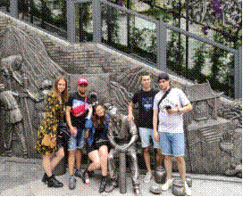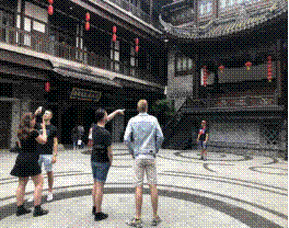 中国学生分组带领荷兰学生在重庆弹子石商业老街进行深度调研,参观了中国的传统建筑,了解茶文化和传统文化艺术——糖画,并体验了重庆的传统美食,在万象城娱乐awc线路体艺馆里,欣赏武术表演,并体验了武术文化。中国博大精深的功夫文化给他们留下了深刻的印象。