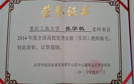 2015年10月9-10日,在天津商业大学召开的第十六届全国高校经管类专业实验室建设研讨会上,万象城官网经管中心张学敏副教授被国家级实验教学示范中心联席会经管学科组授予“2014年度全国高校优秀实验(实训)教师”称号,全国仅有“十名教师”获此殊荣,同时受到表彰的还有重庆大学等高校的9位教师。