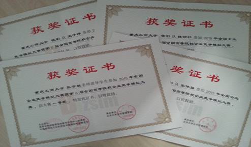 2015全国企业竞争模拟大赛本科组获得全国总决赛一等奖 证书