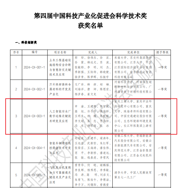 近日,第四届中国科技产业化促进会科学技术奖评选结果揭晓,由万象城娱乐awc线路人工智能学院与国合基地联合研发的“人工智能污水厂数字运维关键技术研发及应用”项目荣获科技创新一等奖。