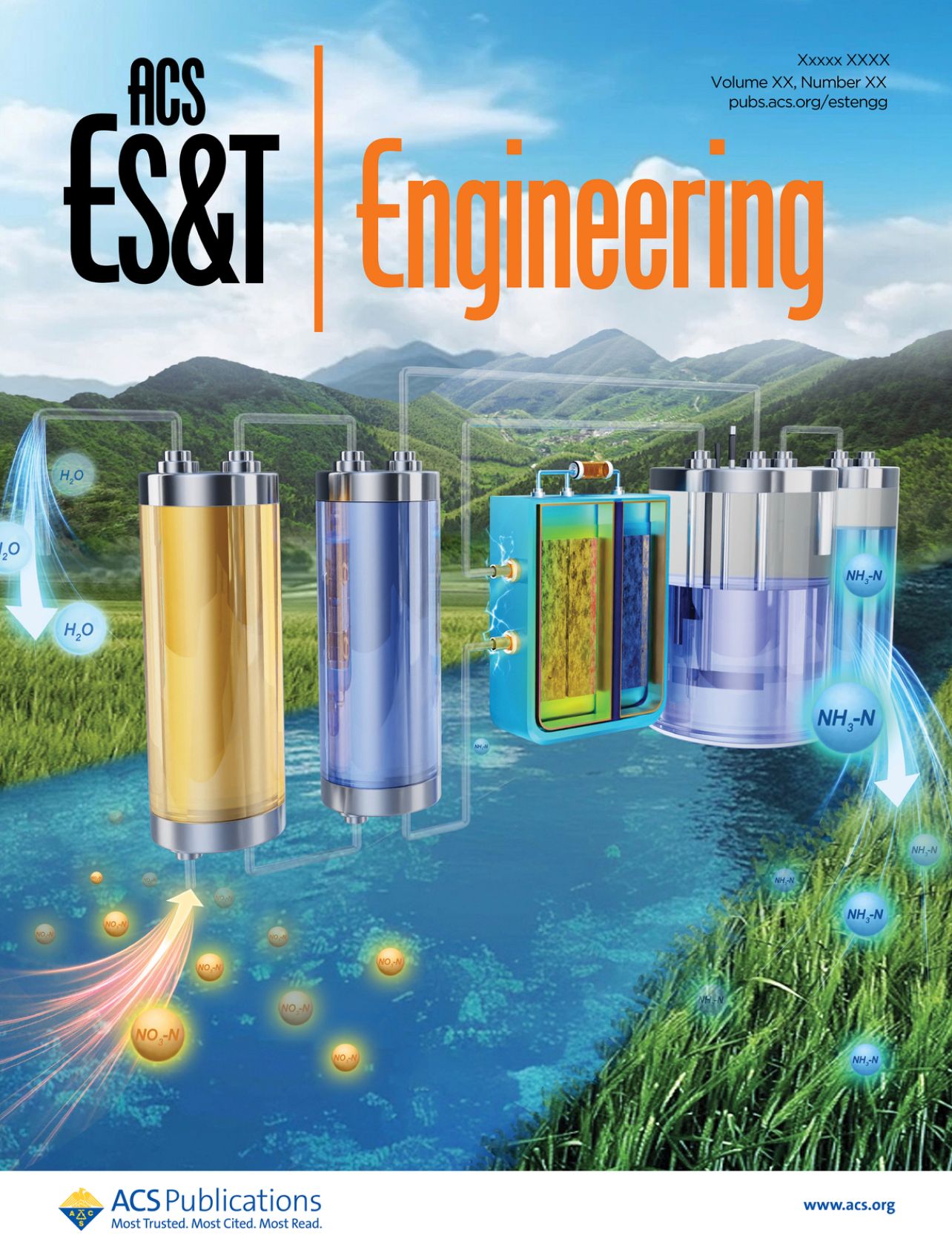 进展二:开发了一套包含“离子交换装置—树脂再生装置—电化学转化器—超声强化汽提装置”四个单元的一体化反应系统装备,可同时实现硝氮污染控制和氮资源循环利用的目标,可适用于缺乏电解质的自然水体或含结垢离子的工业污染水体修复。开发了铜基单原子催化剂(Cu1/CeO2),在原子水平上阐明了反应路径和决速步骤,提出了“缺电子Cu1-氧空位”双位点协同反应机制,解决了当前铜基催化剂反应速率慢,电流效率不高的问题。相关成果以封面论文形式发表于ACS ES&T Engineering 2024.