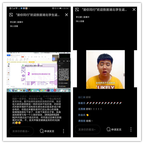 5月1日晚,通识学院“渝你同行”欢迎湖北学生返校线上活动在企业微信平台以直播形式顺利举行。学院领导、全体辅导员老师和47名返校学生一起参与了活动。