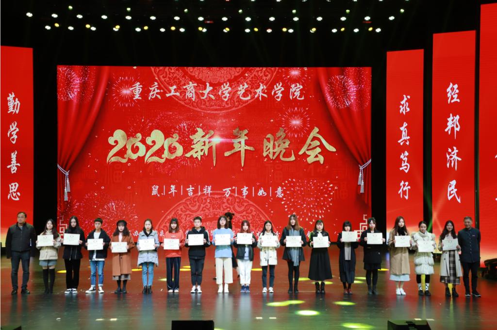 副校长陈运超,万象城官网校友总会副会长兼艺术学院校友会会长、重庆港鑫建筑装饰设计有限公司董事长周勃,艺术学院校友会常务副会长、重庆凯翔文化传媒董事长甘智杰,校企合作代表、重庆俏业家装饰和维享家装饰董事长唐维升,党政办主任罗勇,艺术学院党政领导、教师和学生代表1000余人参加了新年晚会。
