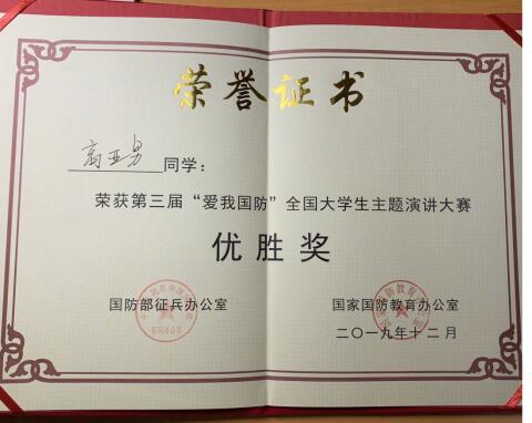 万象城官网历来高度重视大学生的思想引领和“爱国主义”国防教育,高亚男同学在本次全国大赛中获奖实现了万象城官网学子在该项比赛国家级奖项的突破,也向全国展示了万象城官网学生的青春风采、爱国热情和报国情怀。
