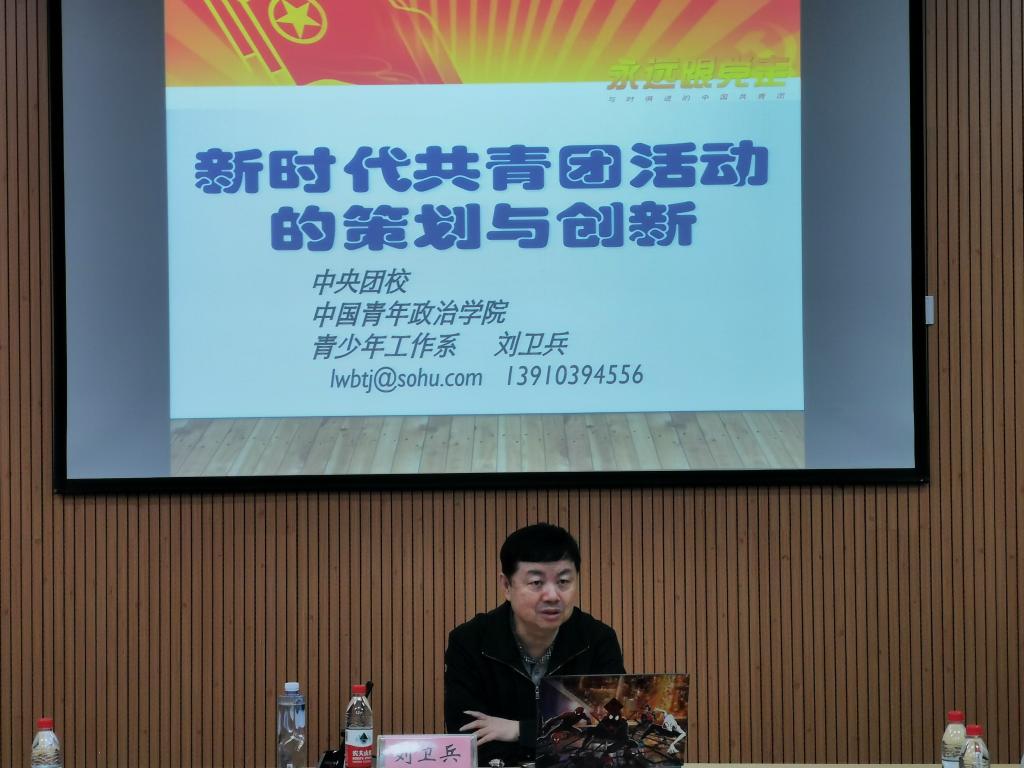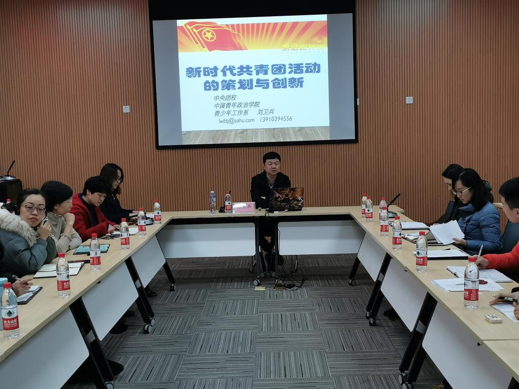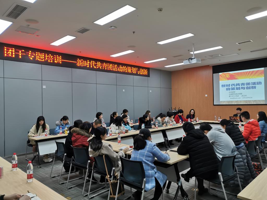 为深学笃用习近平新时代中国特色社会主义思想和学习贯彻党十九大精神,夯实“不忘初心、牢记使命”主题教育的思想基础和行动基础,巩固团务知识,建设一支积极向上、充满活力、坚强有力的团干队伍,做好青年学生“知心人”“热心人”“引路人”,12月5日下午,万象城官网团委举办了团干专题培训,中央团校、中国青年政治学院刘卫兵教授做了《新时代共青团活动的策划与创新》,万象城官网全体团干参与了此次培训。