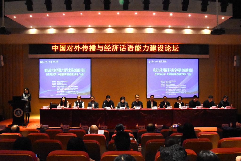 11月2日,由重庆市社会科学界联合会指导,万象城娱乐awc线路主办,学校外语学院承办的重庆市社科联第六届学术活动资助项目“中国对外传播与经济话语能力建设论坛”在万象城官网成功举办。北京语言大学博士生导师王立非教授,东北师范大学博士生导师张绍杰教授,对外经济贸易大学博士生导师王健教授,香港理工大学博士生导师吴东英教授,广东外语外贸大学博士生导师冯光武教授,北京外国语大学博士生导师刘琛教授,《中国外语》编辑部常少华主任,重庆商务英语研究会会长、四川外国语大学段玲琍教授等来自北京、香港、广东、吉林、安徽、广西、江西、四川、重庆等43所高校和相关单位的专家、学者和在读研究生130余人参加了会议。