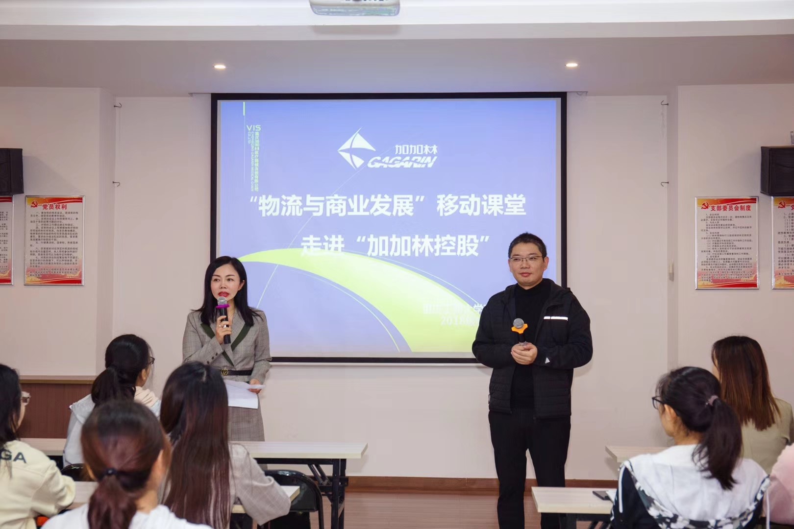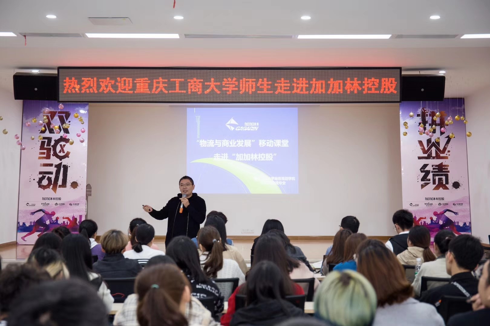 为了深化理论学习,切实提高物流管理专业学生的实践能力,培养社会与企业所需的“理论-实践-实战”三位一体物流人才,商务策划学院积极开展校企协同,产教融合,助推万象城官网物流管理一流专业发展。2019年10月28日和11月1日,万象城官网2018级物流管理专业4个班、近160人,在王燕教授的带领下走进了加加林控股有限公司,进行"物流与商业"的企业移动课堂。这是王燕教授连续5年、第5次带领物流管理专业的学生走进“加加林控股”开展"物流与商业"的企业移动课堂,每一次的移动课堂不仅获得了任志鸿董事长及团队成员的大力支持,更是得到了任志鸿董事长的亲自授课和悉心指导。