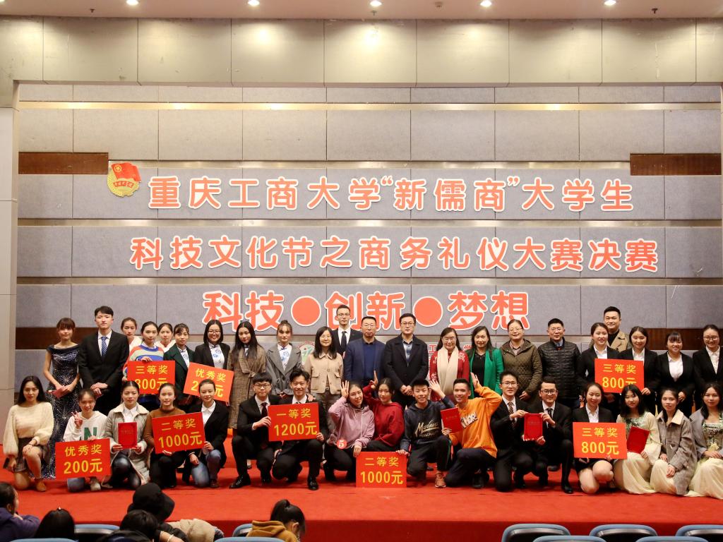 2018年11月16日晚,由校团委主办、旅游与国土资源学院和旅游规划研究学会承办的第十七届“新儒商”大学生科技文化节之商务礼仪大赛决赛在博智楼7100举行。校团委杨娟副书记,旅游与国土资源学院党总支张维贵书记、王宁院长、余新副书记、郭阳旭副院长、杜继淑老师、胡波老师、李爽老师、郭文正老师等领导和老师亲临比赛现场。