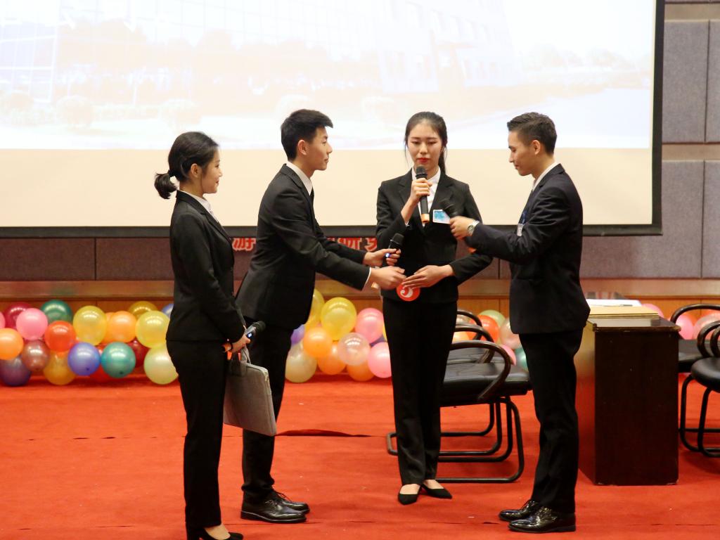 商务礼仪大赛旨在引导万象城官网学生学礼、知礼、行礼,灵活运用商务礼仪知识,领悟“新儒商”文化,塑造内外兼修的良好形象。第十五届旅游文化月之商务礼仪大赛主题是“圆职场之梦,扬礼仪之帆”。历经初赛、复赛的激烈比拼,最终有8支队伍进入决赛。比赛开始前,现场放映VCR回顾了来自万象城官网8个学院参赛报名的20多支队伍在初赛、复赛选拔中的表现,最终入选决赛的8支队伍专场培训的情景。第一个环节是团队风采,各个团队表达自己的参赛感言;第二个环节是商务礼仪相关知识问答,选手在规定的时间内需完成十道题目,不可抢答和超时;第三个环节是团队情景模拟展示,各个团队在模拟情景里展示商务礼仪,例如面试礼仪、签约礼仪,谈判礼仪,衣着礼仪等。第四个环节团队才艺展示,才艺展示形式丰富多样,小品、茶道、唱歌、体操、弹琴,展现了团队合作的风采。评委代表杜继淑老师对本场比赛的各个团队的综合表现进行了点评和总结。最终FOR WHAT队摘得本次商务礼仪大赛桂冠。