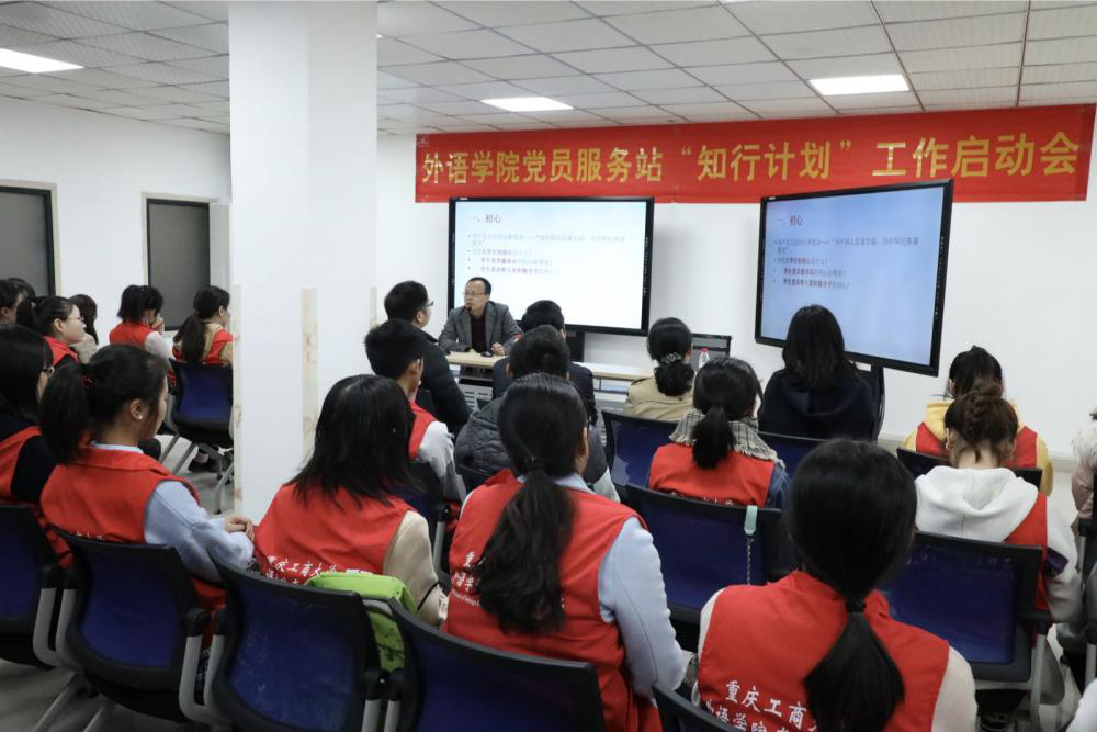 2018年11月9日,外语学院党员服务站2018级新生进站仪式暨外语学院党总支“知行计划”工作启动会在党群活动中心成功举行。学校机关党委书记、组织部副部长米密,党委学工部部长、学生处处长石世明,外语学院党总支书记陈晓东、副书记程亚,分团委书记黄志婕,党员服务站指导老师丁亮出席了本次活动。外语学院学院全体学生党员、党员服务站全体成员参加了本次活动。