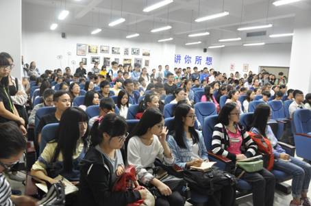 三场演讲现场气氛热烈,精彩的演讲不时引起同学们的阵阵掌声。在交流提问环节,现场同学针对在大学期间怎么确定学习目标、如何利用网络学习、是否考研、是否转专业、怎么协调好时间等问题积极发问。主讲人分别作了详细回答。艺术学院广播电视编导专业的尹佳文同学参加了本次讲坛以后,高兴地告诉记者:“收获很大,学习到了很多东西,平时学习和生活中的诸多疑惑得以解决”。