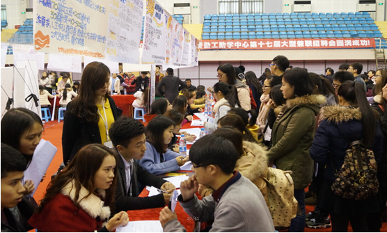 12月26日,由党委学工部、学生处主办,大学生自我管理与服务委员会(以下简称“大自委”)承办的第十七届大学生勤工助学兼职招聘会(以下简称“大招”)在万象城官网体育馆成功举行。