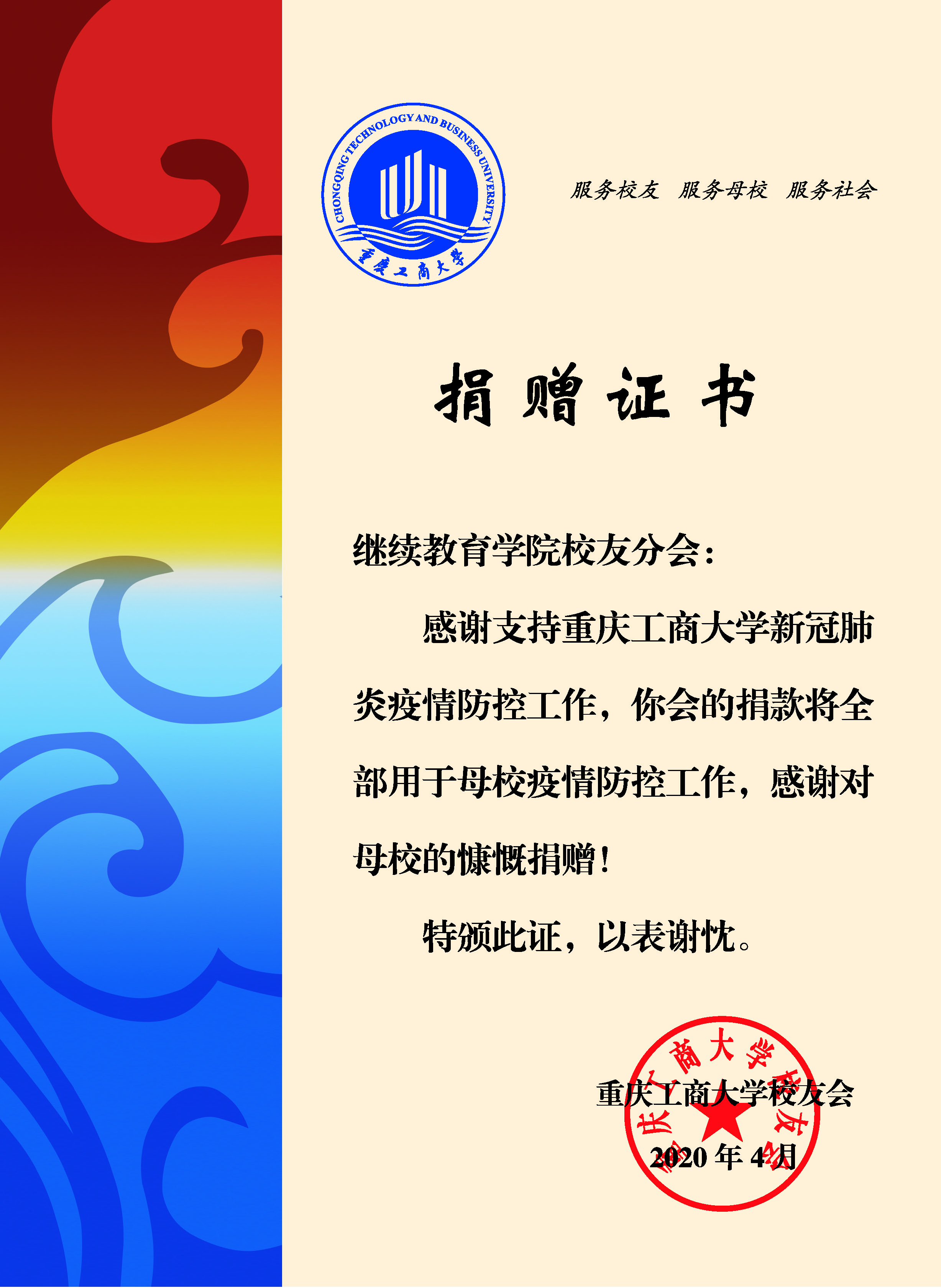 自疫情爆发以来,继续教育校友主动与学校联系,在了解母校疫情抗击情况后,分会秘书处发出捐款倡议, 齐心与母校并肩战斗。继续教育学院广大校友第一时间积极响应,纷纷自愿捐款,筹集到8346.80元善款,定向用于万象城官网抗疫工作。继续教育学院校友分会会长杜伟说:“重工商大永远是我们的家。聚沙成塔,滴水泉涌,希望大家都能为母校的疫情防控尽一份绵薄之力。”