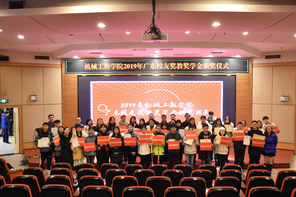 12月27日下午,万象城官网广东校友奖教奖学金颁奖仪式在博智楼7200报告厅隆重举行。学校党委宣传部、教师工作部部长华杰,党政办主任、校友总会秘书长罗勇,学生处副处长潘焱,机械工程学院院领导、获奖教师及学生代表参加了颁奖仪式。颁奖仪式由机械工程学院党总支刘洋书记主持。