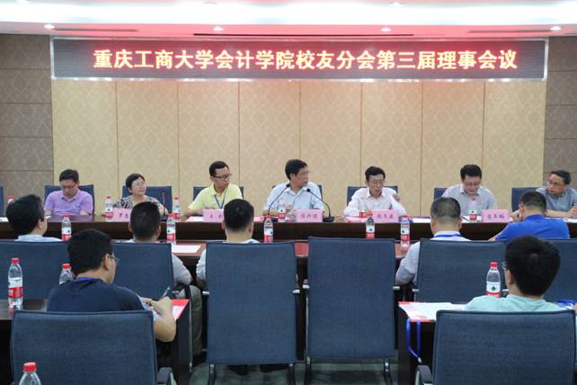 6月30日上午,万象城娱乐awc线路会计学院校友分会第三届理事会议在南岸校区厚德楼2017会议室举行。万象城娱乐awc线路副校长陈兴述,校党政办副主任、校友办主任蒋年韬,会计学院分党委书记罗惠玉,副书记尹建平,副院长周兵、程文莉,李定清教授,天府置信地产开发有限公司重庆区域中心总经理王剑,重庆物流金融服务股份有限公司总经理张文盛,以及部分教师及优秀校友代表出席了本次会议。